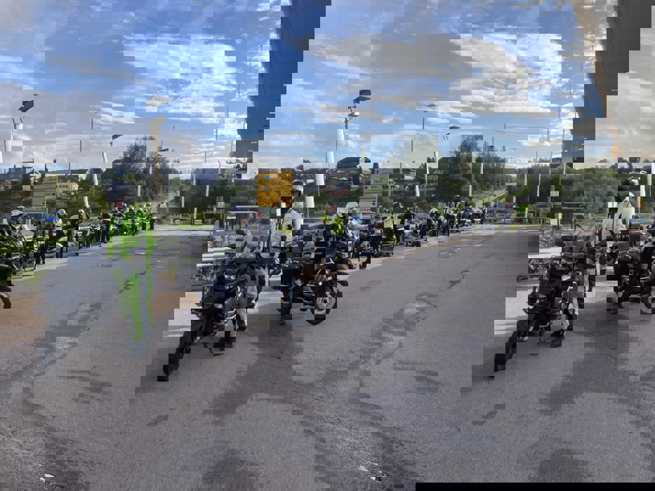 personer med 16 motorsykler møtte til start på Fetsund lørdag kl. 10:00.