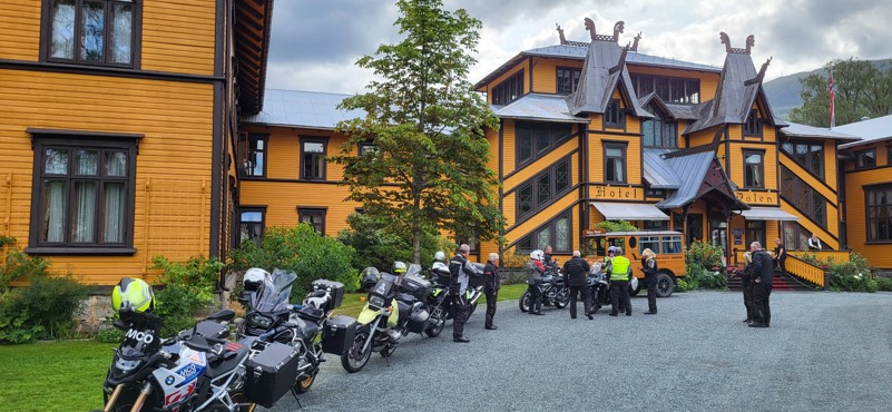 Det var ikke langt bort til Hotellet, og det begynte allerede å fylles opp med BMWer på plassen foran. MC Oslo var også på plass med stands og sykler som kunne prøves. Jeg vet flere som prøvde, og har kjøpt....