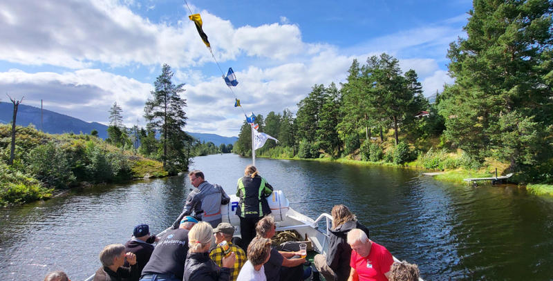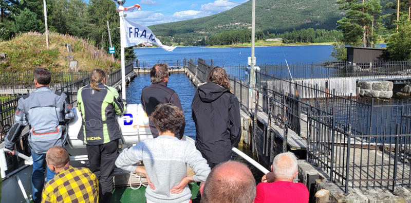 Etter første dags turer, ble det båttur med M/S Fram i slusene mellom Nisser og Vråvatn. Været var perfekt med sol, blå himmel og lett bris. Rett ved slusa, var det et lite museum som viste historien til slusene og frakt av folk, last og tømmer i vassdraget. Med kapteinens tørrvittige humor og enorme lokalkunnskap, satt latteren løst og stemningen var høy. En god start på kvelden.